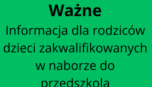 INFORMACJA DLA RODZICÓW DZIECI ZAKWALIFIKOWANYCH DO PRZEDSZKOLA Rodzice dzieci zakwalifikowanych do prz...