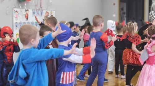 Tak bawiliśmy się podczas balu! Kolorowe stroje, wesoła muzyka i mnóstwo pozytywnej energii – nasze przedszkolaki wiedzą, jak rozkręcić imprezę!