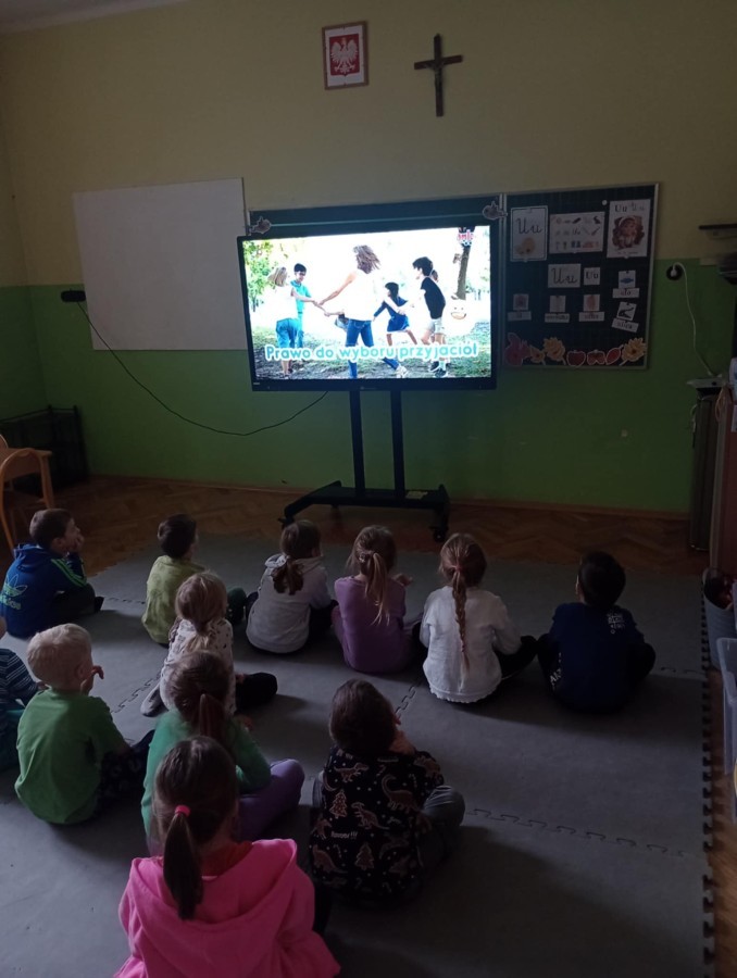 W naszym przedszkolu obchodziliśmy Dzień Praw Dziecka. Przedszkolaki podczas zajęć rozmawiały o swoich prawach, uczyły się, czym jest szacunek, bezpieczeństwo i życzliwość. Oglądały ilustracje, brały udział w zabawach edukacyjnych oraz tworzyły prace plastyczne związane z tematem.