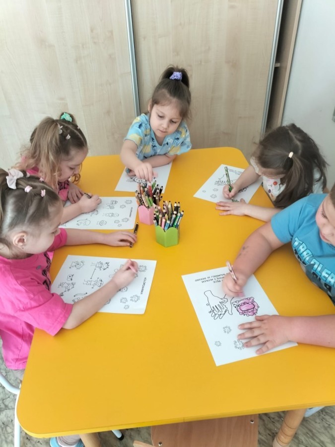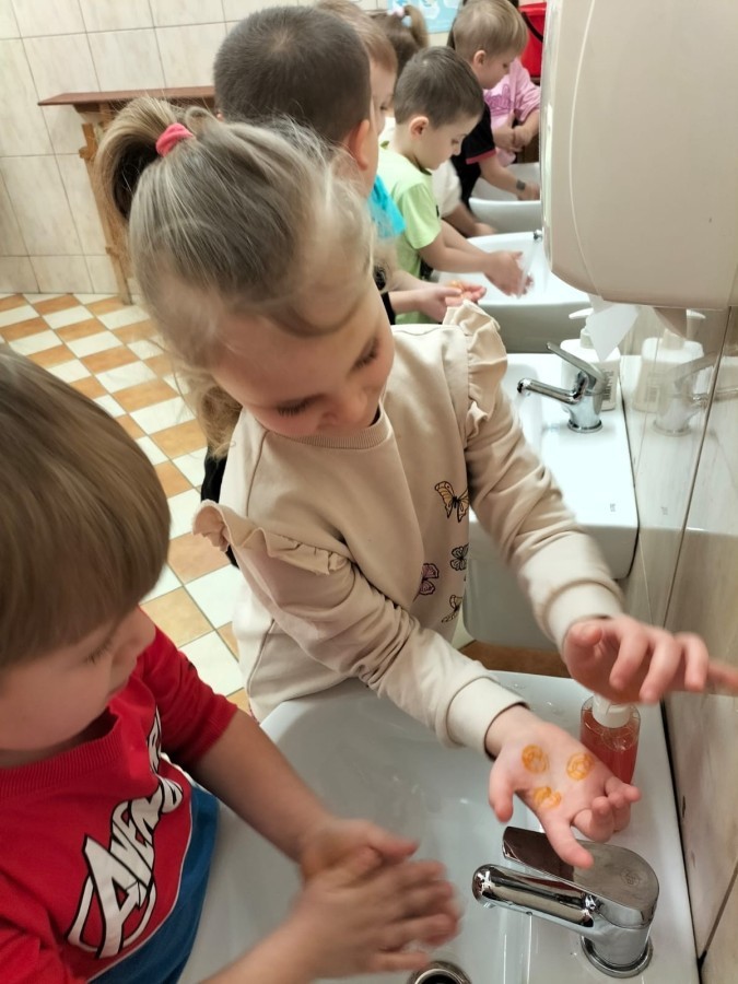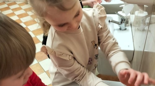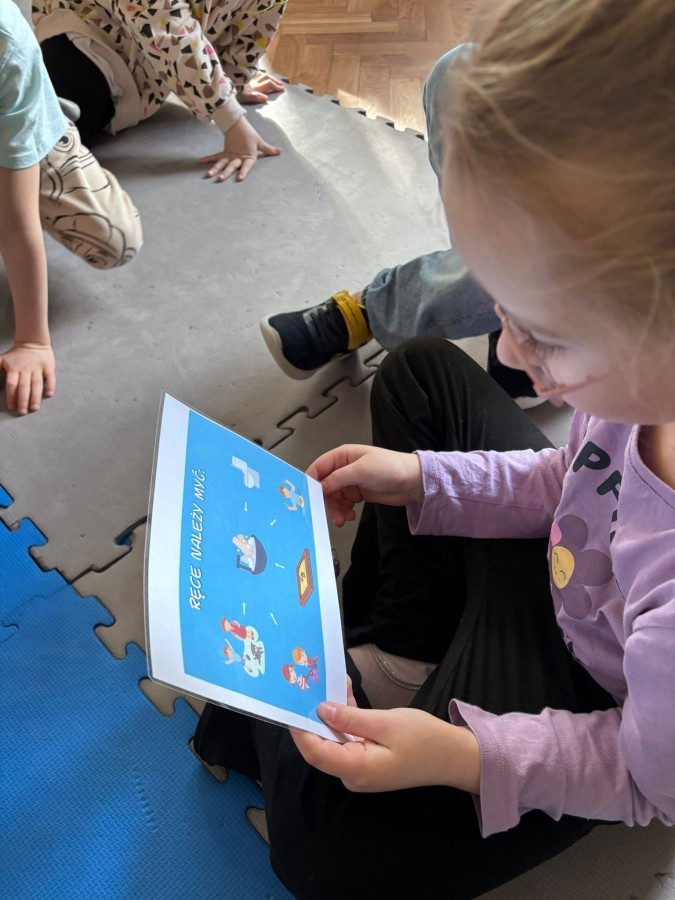 Podczas zajęć dzieci dowiedziały się, jak ważne jest dokładne mycie rąk, szczególnie przed jedzeniem, po skorzystaniu z toalety oraz po zabawie. Przedszkolaki uczyły się prawidłowej techniki mycia rąk, rozmawiały o zasadach higieny oraz o tym, jak można zapobiegać chorobom i zakażeniom.