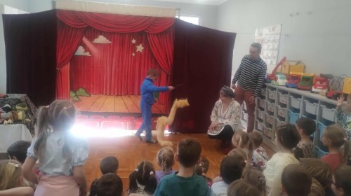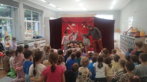 Teatr Bajkowe Skarbki Śląska gościły w naszym przedszkolu z przedstawieniem "W krainie lalek teatralnych".