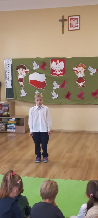 W przedszkolu zorganizowaliśmy także konkurs recytatorski poświęcony tematyce patriotycznej. Dzieci prezentowały wiersze o Polsce, symbolach narodowych oraz bohaterach naszej historii. Mali recytatorzy wykazali się ogromną odwagą, piękną dykcją i wzruszającymi interpretacjami utworów.